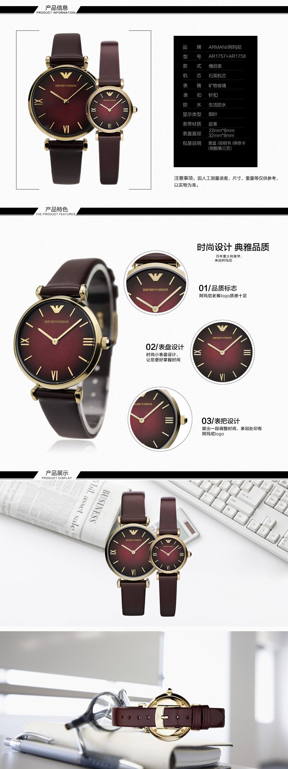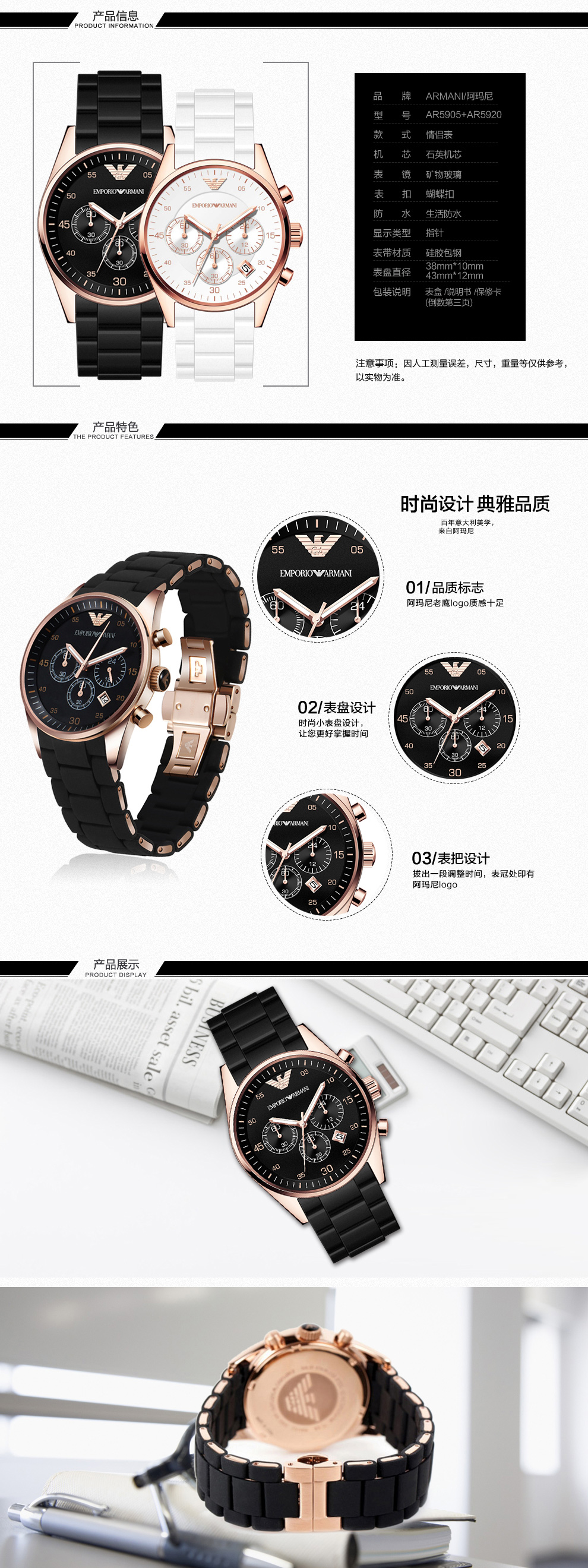 商品名称:アルマニル腕時計欧米鋼帯カレンダークウォーク腕時計ビジネス男性女性用カップル腕時計ペアAR 1677+AR 1683