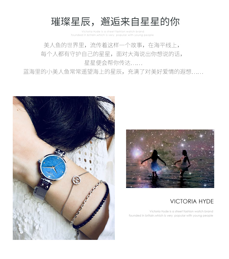 VICTORIA HYDE腕時計女子学生ファンシー小文字盤小大衆クウォーク腕時計の火花シリーズ防水腕時計時計バラバラ金柄帯
