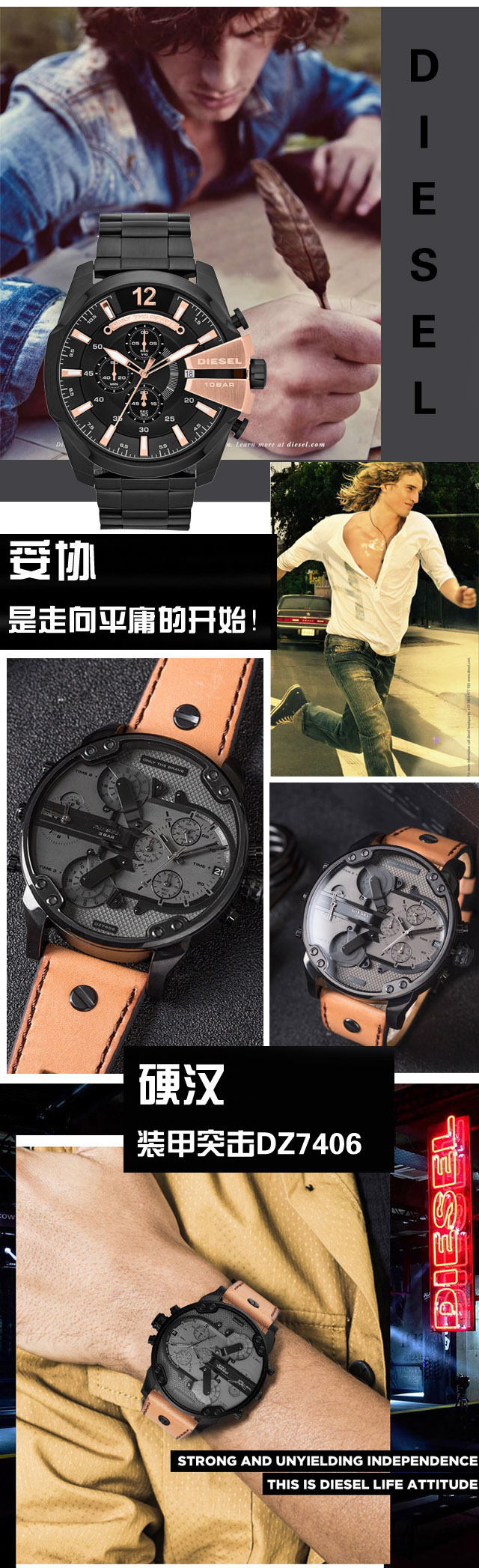 デサイ(Diesel)腕時計男性大文字盤の珍しい配色をしたクールな男性用腕時計装甲突撃DZ 7406