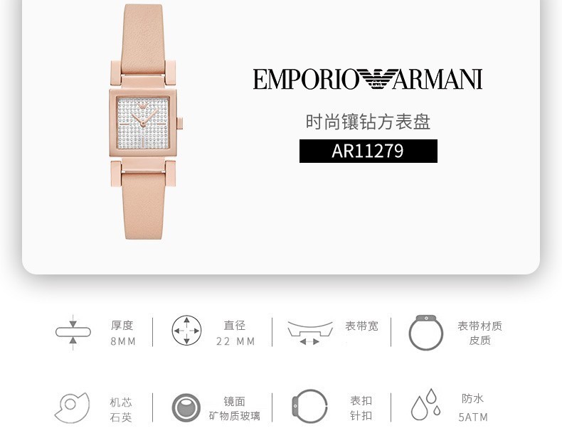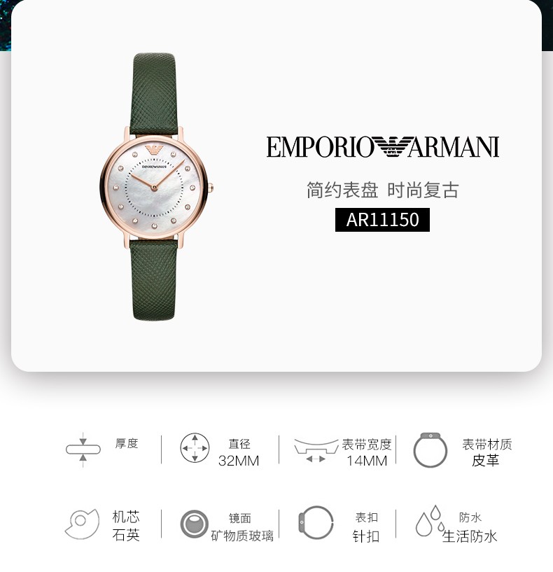 アルマニニ腕時計女(Emporo Ammani)小緑表GIOIAシリズのファンプロプロの四角形盤とカージラープ女子時計の古典的なミニ緑時計ベルト11149