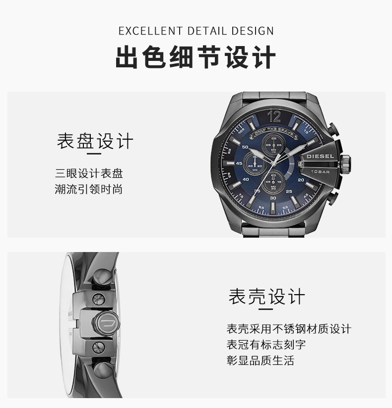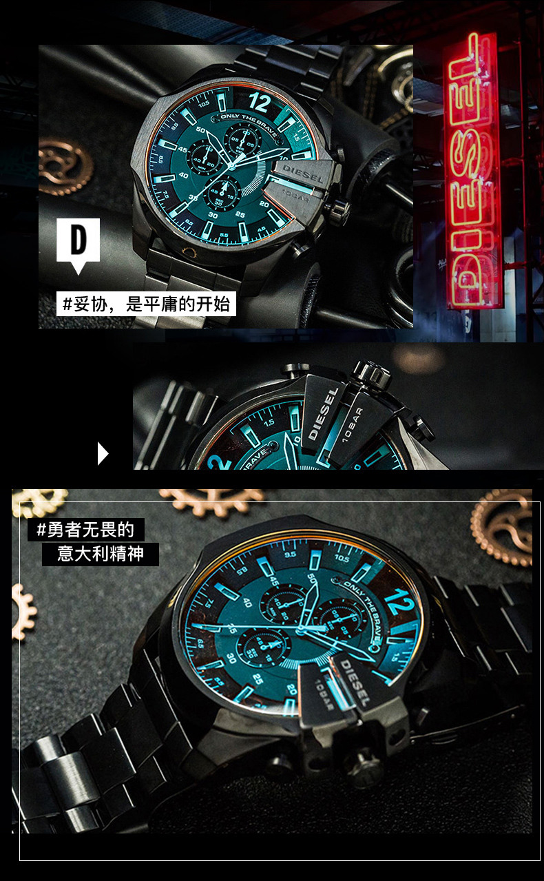 デサイの腕时计ディエス男性の腕时计の华やかな三眼の时间计测のフュージョンの潮流の男性のクウウォーは腕时计CHIEFの指挥官のシリズは鲜やかな偏光D 4519をまぶす。