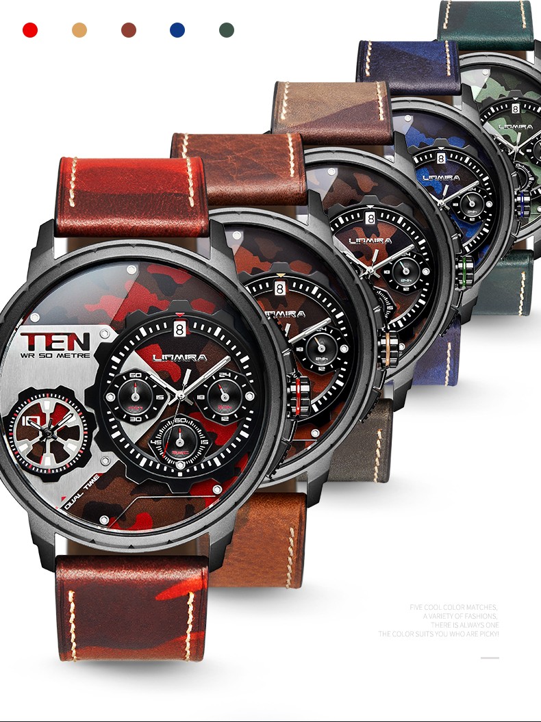 Limira林慕腕時計アメリカ潮牌4 m同型の超大型文字盤腕時計男女双時区クウォーウォーウォーウォードウォークウォート腕時計50 m防水LM 682自由草原-緑迷彩