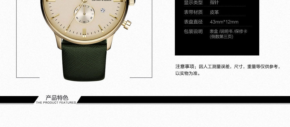 商品名称:アルマニール腕時計男性腕時計カップル腕時計ファッションビジネスカジュアル非機械表多機能男時計AR 1819