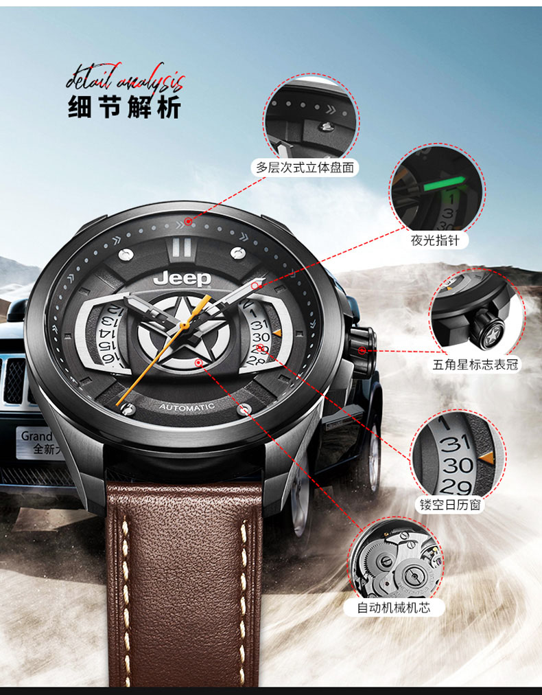 ジホープ(JEEP)大切ノキー男性全自動機械時計カーージュア腕時計多機能夜光防水軍用腕時計オレファゴット腕時計男JPG 9001 MA