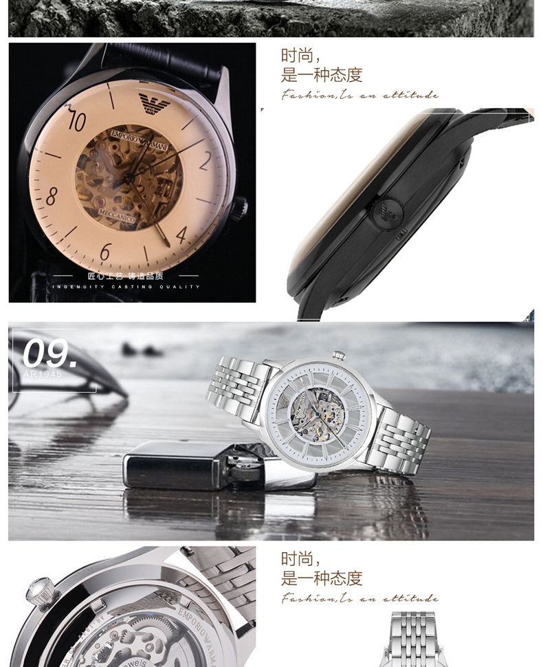 アルマニル(Emporo Armani)腕時計男性規格品男性機械表オミファ·マット自動透かし男性腕時計呉磊同款AR 60012